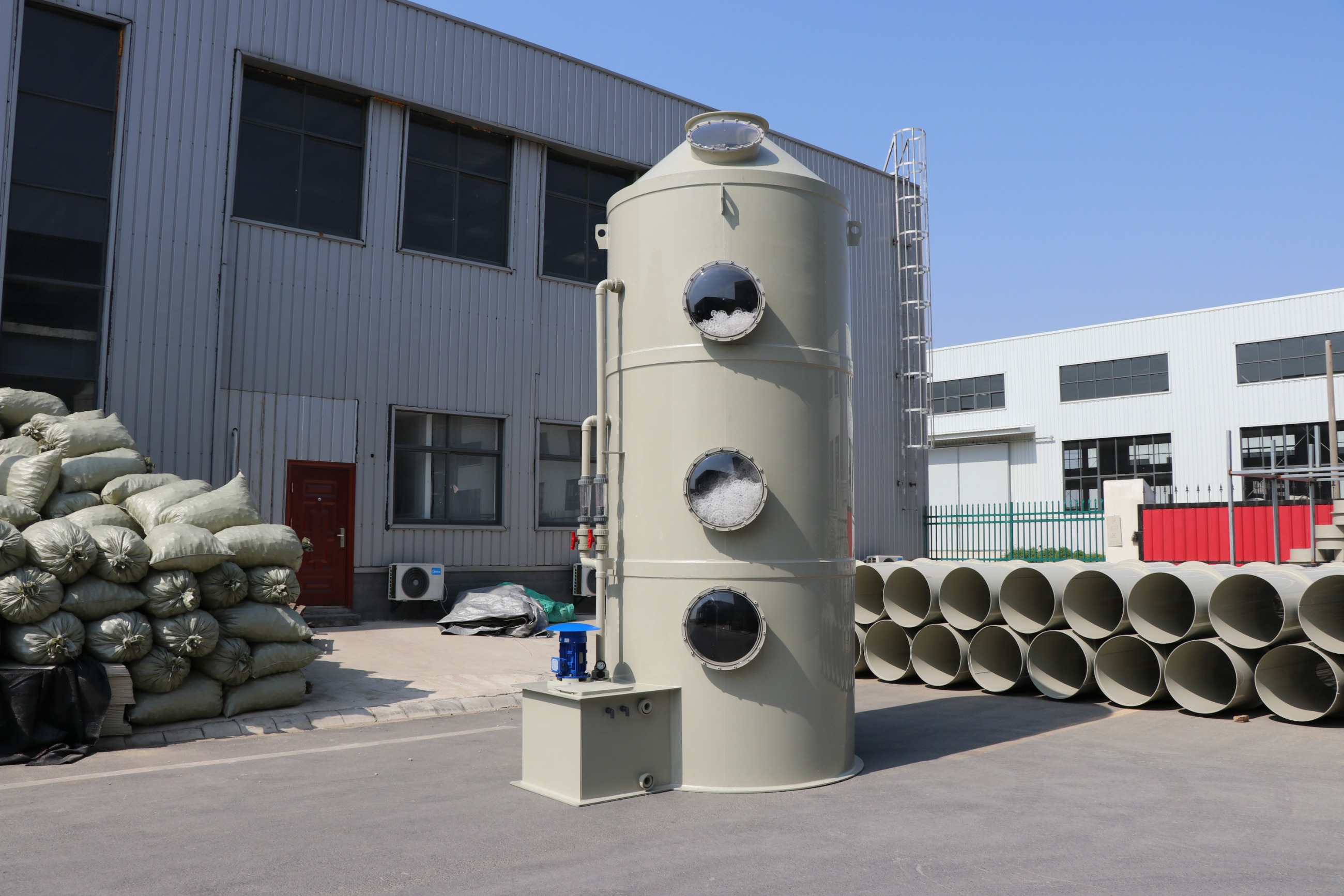 PP噴淋塔也叫做PP洗滌塔、酸霧凈化塔--酸堿廢氣處理設備;